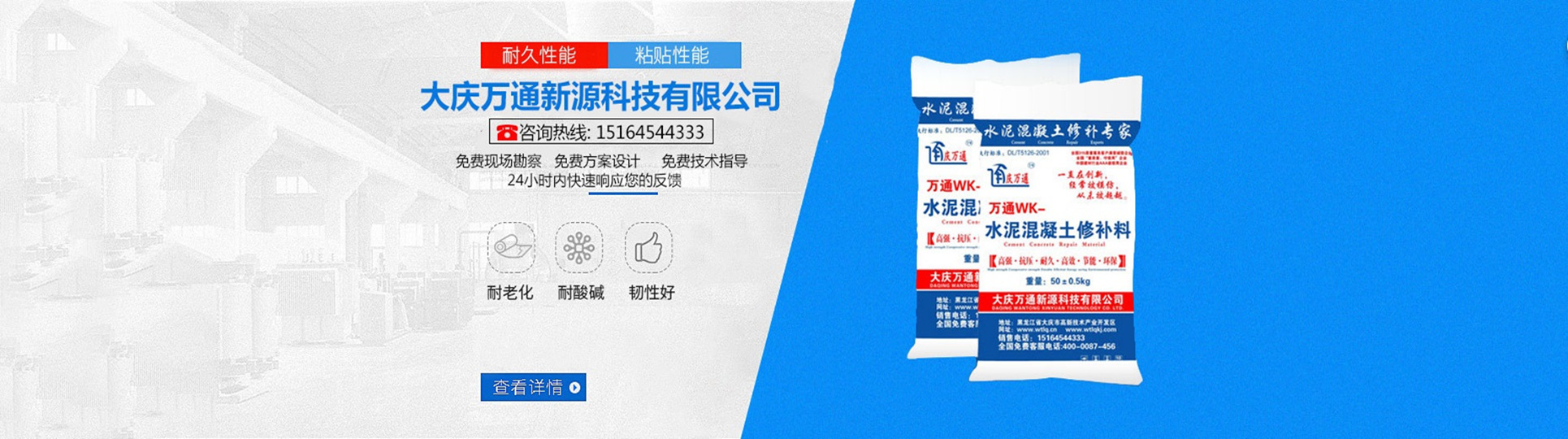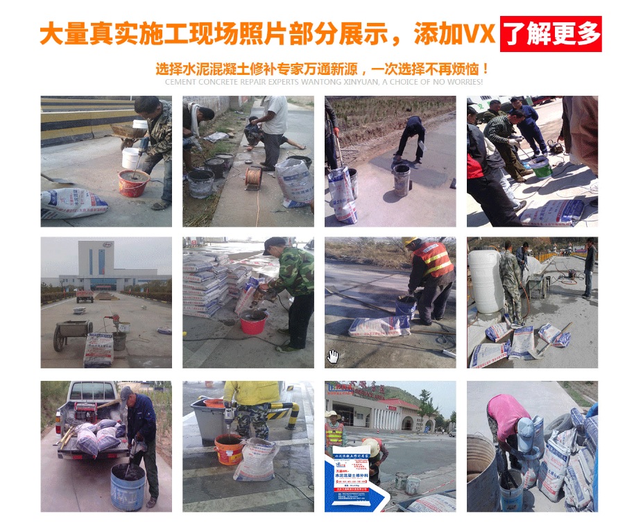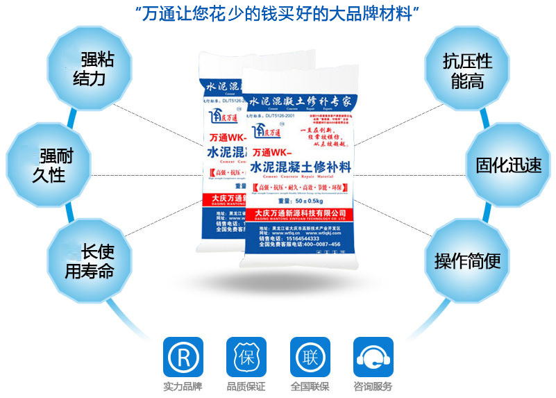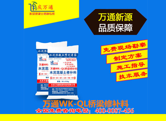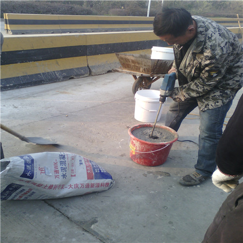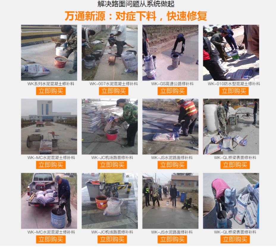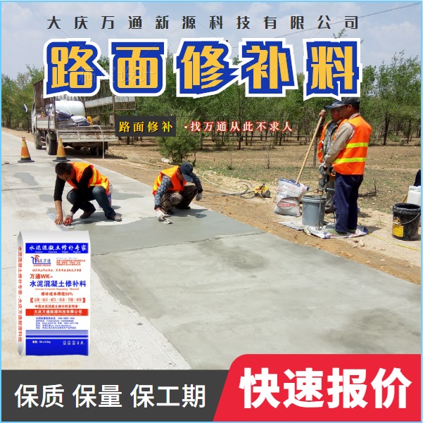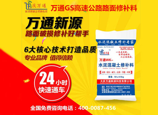 大慶萬(wàn)通新源科技有限公司獨(dú)有的混凝土路面高強(qiáng)速補(bǔ)料,是水泥混凝土路面病害修復(fù)的好材料。疲勞、凍融循環(huán)、彎曲壓力、滲水和基層破壞等原因都會(huì)引起水泥路面的破損,從而帶來高昂的維護(hù)費(fèi)用。與以往的剛性修補(bǔ)方法不同,混凝土水泥路面維修速補(bǔ)膠提供了一種獨(dú)特的柔性修補(bǔ)產(chǎn)品和技術(shù),高柔性、高抗拉性,可跨伸縮縫施工和高抗壓性使得混凝土快補(bǔ)產(chǎn)品為水泥混凝土路面提供了******性的修補(bǔ)。傳統(tǒng)的剛性修補(bǔ)方案,如環(huán)氧砂漿和快干水泥產(chǎn)品,由于其自身的粘結(jié)失效,抗疲勞性低以及與原路面不同的伸縮系數(shù),修補(bǔ)面會(huì)在短時(shí)間內(nèi)失效或產(chǎn)生新的裂縫,需要反復(fù)修補(bǔ),有效期短且費(fèi)用高昂。大慶萬(wàn)通新源科技有限公司的混凝土水泥路面維修速補(bǔ)膠可以隨原路面一起伸縮,移動(dòng),從而避免了粘結(jié)失效和產(chǎn)生新裂縫。萬(wàn)通快補(bǔ)產(chǎn)品優(yōu)異的粘結(jié)性、柔韌性和高防滑性,特別適用于水泥路面的淺層粘合修補(bǔ),多邊角混凝土板層修補(bǔ),跨伸縮縫修補(bǔ)以及路面沉陷修補(bǔ)。萬(wàn)通混凝土病害修補(bǔ)料針對(duì)混凝土起皮起沙、斷板裂縫、蜂窩麻面、坑槽露石子、漏筋掉皮、橋梁的掉皮漏筋快速通車使用時(shí)間長(zhǎng)。應(yīng)用萬(wàn)通快補(bǔ)產(chǎn)品,施工后一天就可以恢復(fù)交通。大慶萬(wàn)通新源科技有限公司的萬(wàn)通水泥路面維修速補(bǔ)膠適用于高速公路、機(jī)場(chǎng)路面、農(nóng)村村村通路面、廠坪、學(xué)校操場(chǎng)、市區(qū)公路、小區(qū)路面、橋梁、水泥路面的修補(bǔ)。使用萬(wàn)通特快補(bǔ)材料修補(bǔ)路面可以一勞永逸! 水泥地面起砂怎么辦,混凝土修補(bǔ)劑混凝土地面起砂,混凝土地面修補(bǔ),地面起砂怎么辦,